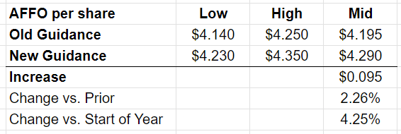 Guidance for Core FFO was bumped by 2.26%, which is a big bump for a third-quarter release: