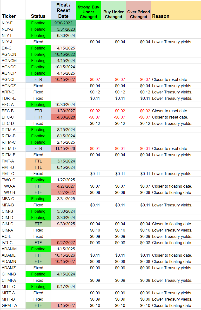 Targets Added: CIMP, AGNCZ, RITM-E plus Updates for Baby Bonds and Preferred Shares